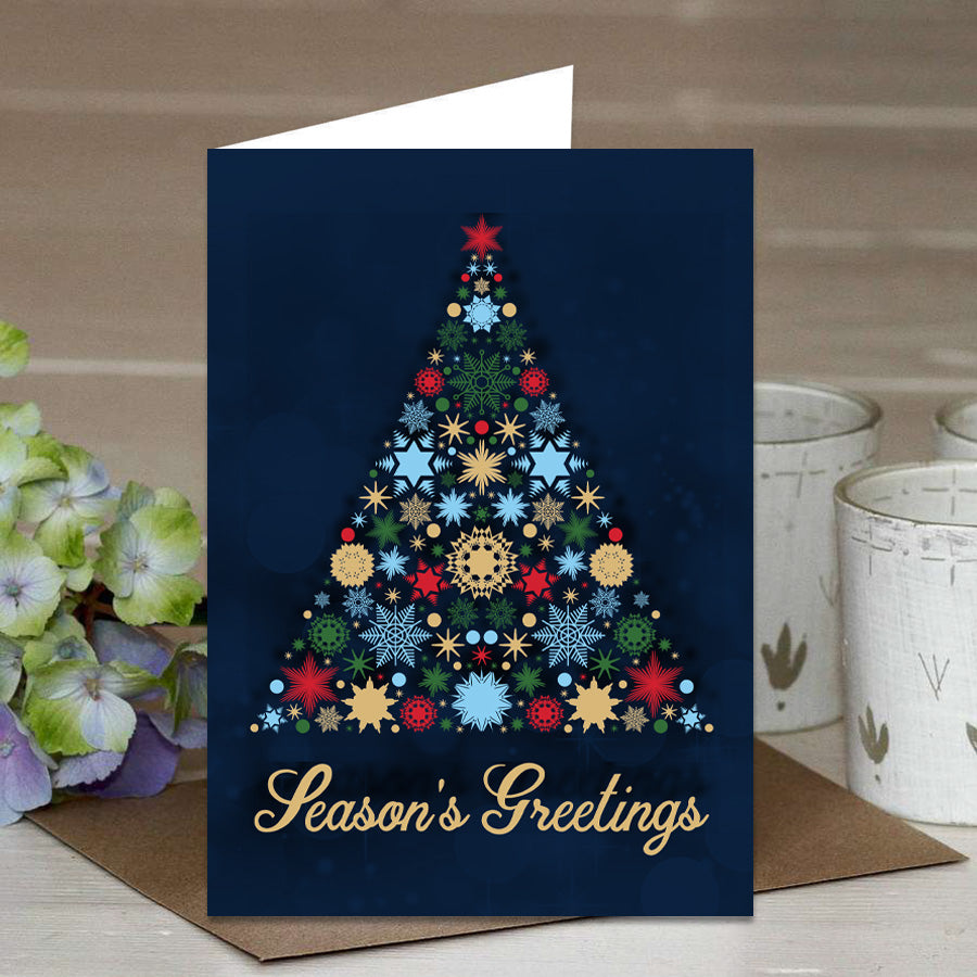 Help spread holiday cheer with this festive greeting card that showcases a stunning gold foil decorated tree design! It's the perfect way to send warm wishes to loved ones.