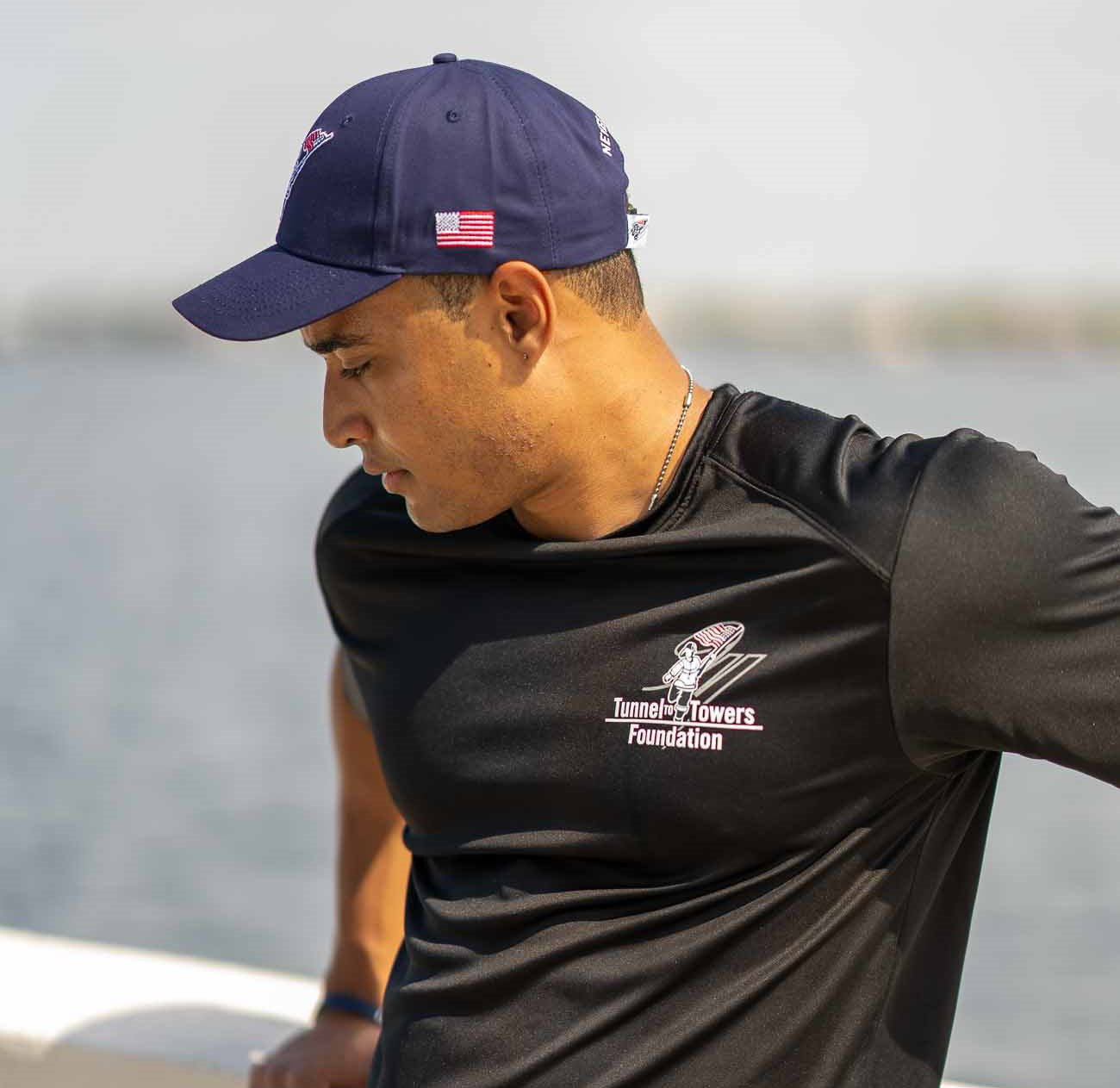 This Performance Tee features our logo on the front and a brand-new design on the back. Capturing the NYC skyline helps us to Never Forget the brave souls we lost on 9/11 and the sacrifices of all America’s heroes. The performance material will keep you cool and protected in any weather. (Also Available in Bimini Blue)