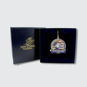 The ornament has been carefully placed inside a navy blue box featuring our logo on the top in gold foil. The inside of the box is beautifully lined in navy blue felt.