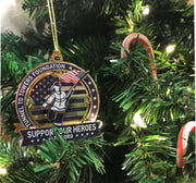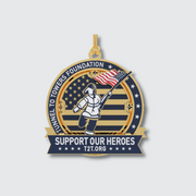 One side of the ornament has the iconic Stephen Siller image and our commitment to Support Our Heroes. The second side has the image of the Twin Towers so that we Never Forget.